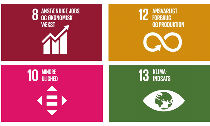 Ud af de 17 verdensmål har vi valgt fire, hvis fokusområder passer bedst til vores forretningsaktiviteter og drift.